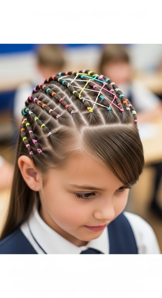 The criss-cross rubber band hairstyle for kids is one of the most popular and stylish school looks.