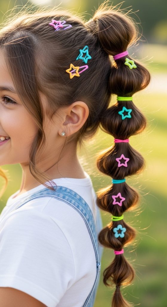 The bubble ponytail hairstyle for kids is trendy and easy.