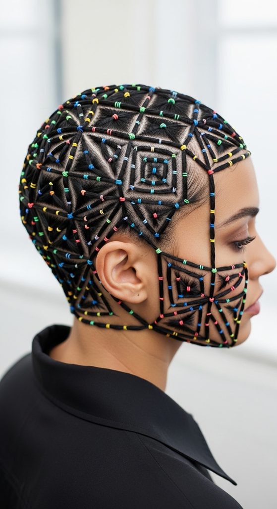 Divide the entire head into small sections and connect them in patterns like squares or diamonds.
