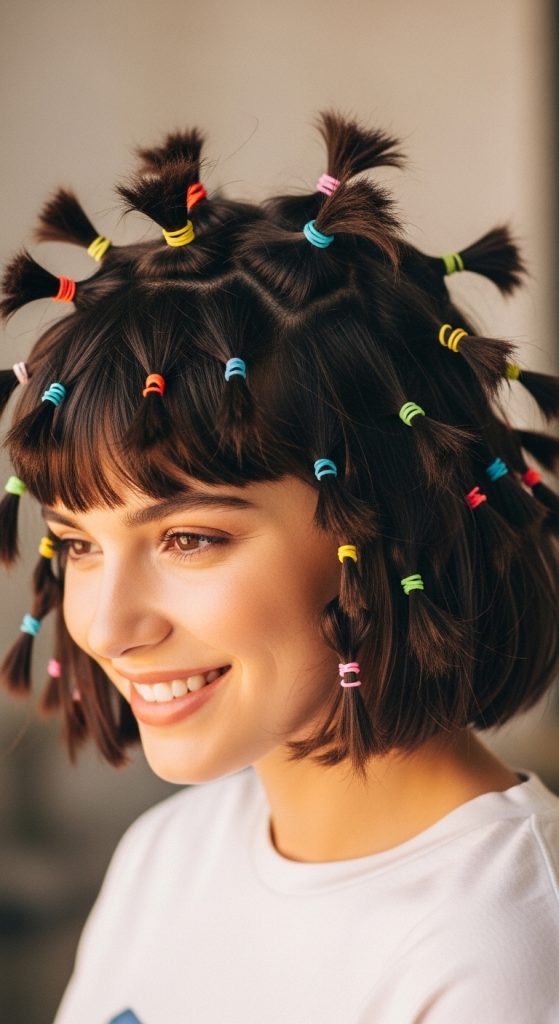 Short hair doesn’t limit your styling options—in fact, it opens the door to some of the cutest and most creative looks, especially when using rubber bands. Hairstyles with rubber bands for short hair are trending because they are simple, quick, and add instant detail to even the shortest lengths.