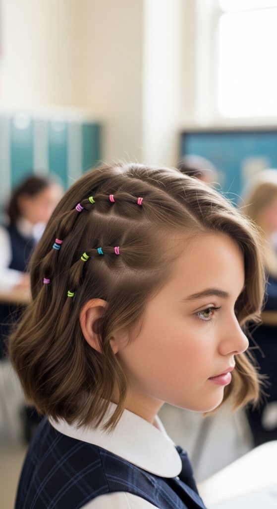 Rubber bands help create structure in short hair by forming small sections, mini ponytails, and decorative patterns. This makes them perfect for kids, teens, and even adults who want a playful or stylish everyday look without using heat or complicated tools.