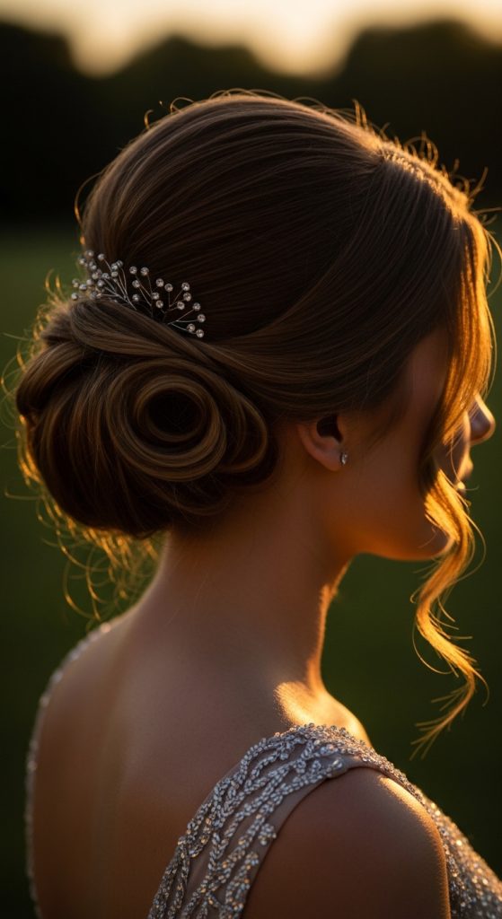 Prom bun hairstyles can be enhanced with subtle accessories such as decorative pins or small combs. These additions highlight the bun while maintaining the overall elegance.
