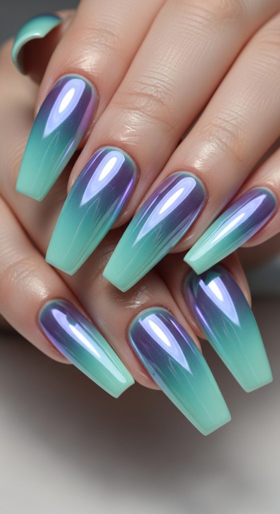 Metallic pastel shades give classic Easter egg colors a modern twist. Think chrome lavender, metallic mint, or shimmering baby pink.