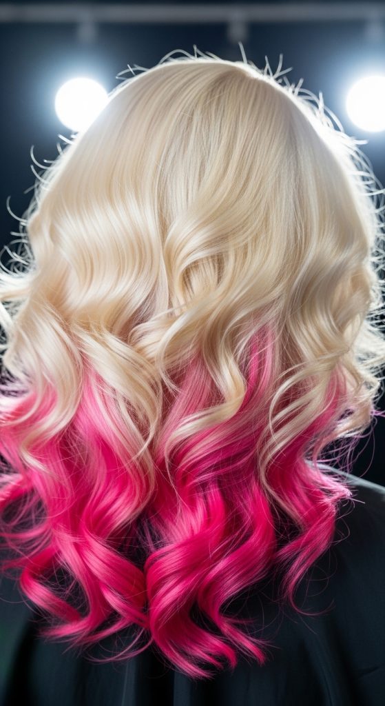 Neon pink underlights create bold statement contrast under blonde layers. This style is perfect for festivals, concerts, or anyone who loves high-energy color.
